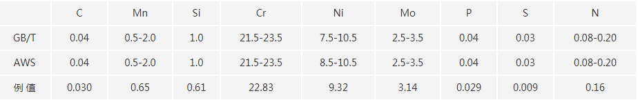 適用于石油化工行業對應鋼材00Cr22Ni5Mo3N(SUS2205)及S31803等含有22%Cr雙相不銹鋼的焊接。