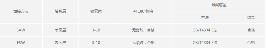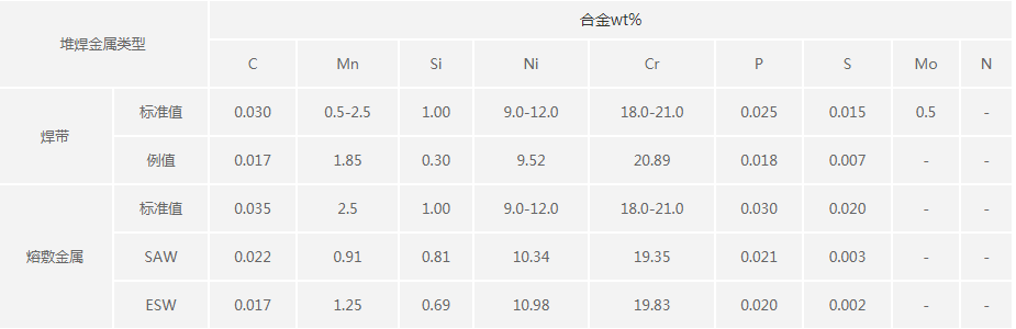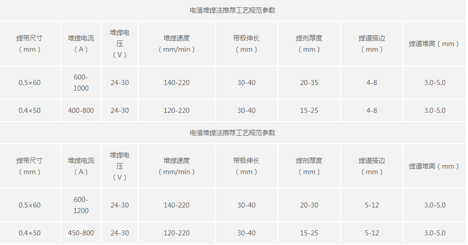 電弧堆焊時配合SJ303焊劑使用;電渣堆焊時配合SJ15B焊劑使用。熔覆金屬雜質元素C、S、 P等元素含量低,績效性能及耐腐蝕性能好。焊劑工藝性能較好,堆焊過程穩定,脫渣容易, 焊道表面平整光滑、熔合良好,稀釋率較低。