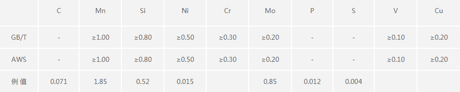 適用于焊接抗拉強度相當于830MPa級的低合金鋼結構。